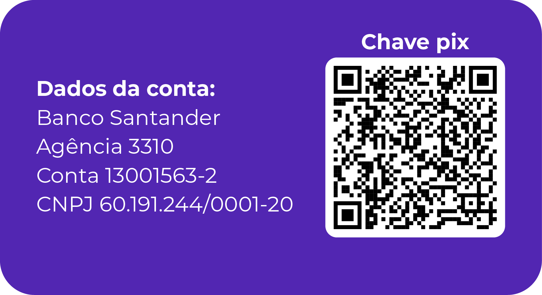 Utilize os dados abaixo ou o QR Code para realizar sua doação.