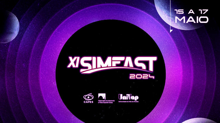 O XI SimFAST acontecerá dias 15, 16 e 17 de maio de 2024 na cidade de São José dos Campos/SP, Brasil, no observatório de Astronomia e Física espacial da UNIVAP localizado no Campus Urbanova de forma presencial. O evento contará com sessão de posters, apresentações orais, minicursos, palestras e rodas de consersa. Teremos palestras de pesquisadores do Brasil e do exterior sendo que algumas serão transmitidas pelo canal de YouTube do programa, e outras serão realizadas ao vivo.