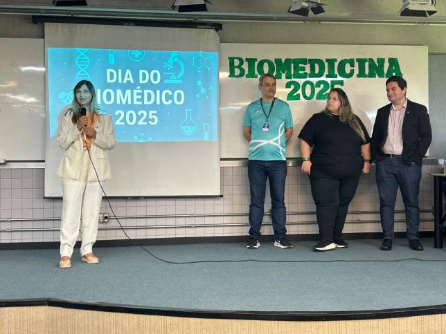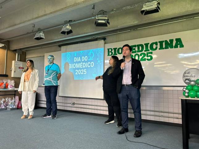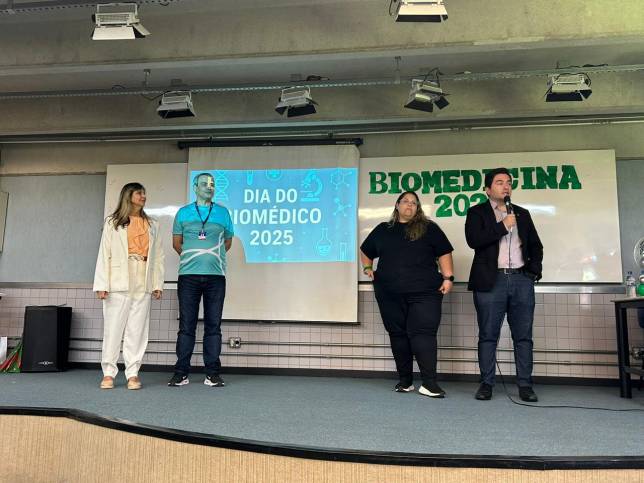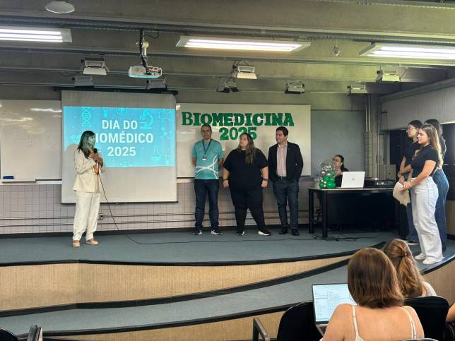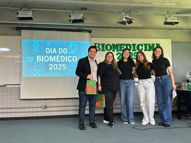 Em comemoração ao Dia do Biomédico, alunas e professores do curso de Biomedicina, organizaram uma manhã especial aos estudantes. Alunos de diversos períodos se reuniram neste encontro para celebração, aprendizado e inovação.