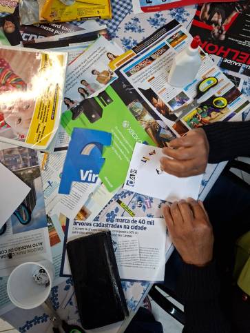 Outro grupo focou além da oralidade, na escrita e na memória afetiva por meio das imagens. Sob o olhar atento dos alunos de comunicação, os participantes do EJA trouxeram suas experiências e saberes, no papel de autores e protagonistas de suas próprias trajetórias retratadas em colagem, textos e muita criatividade. Uma produção autobiográfica e artesanal que não exige escrita formal e também transformar histórias individuais em um patrimônio coletivo da turma.