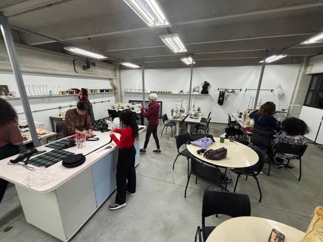 A ação ocorreu na Agência de Moda da Univap e teve como foco a confecção de ecobags que fizeram parte do press kit do Desfile de Moda 2025. Durante o encontro, as voluntárias da Fábrica do Bem e as estudantes trabalharam de forma colaborativa, compartilhando técnicas, experiências e vivências no processo de criação e costura.
