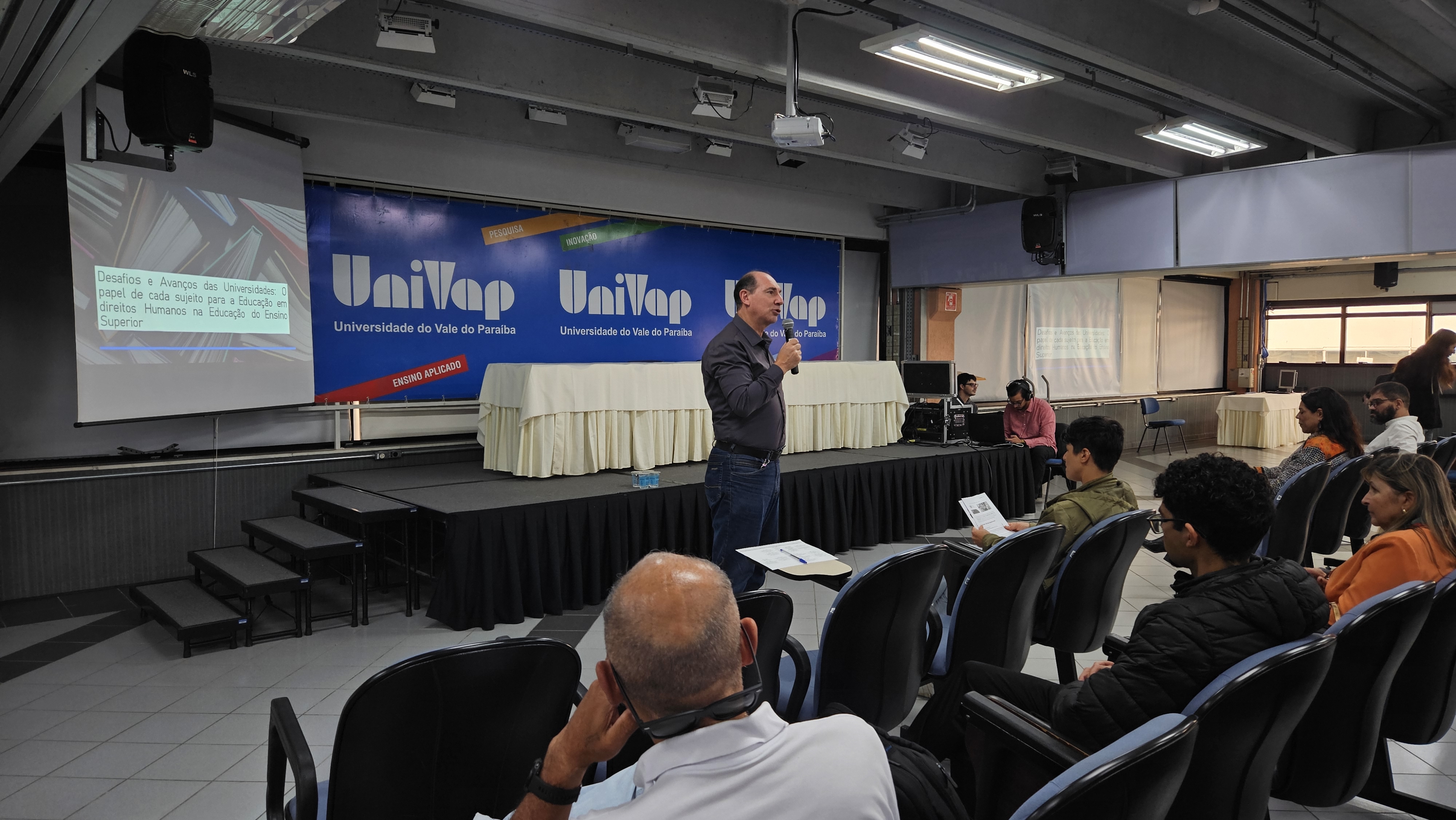 A abertura do evento foi conduzida pelo Reitor da Univap, Prof. Dr. Milton Beltrame Júnior, e teve como destaque a palestra do Prof. Clayton Guerreiro (UNESPAR), que abordou os desafios e o papel das universidades na promoção da educação em direitos humanos.