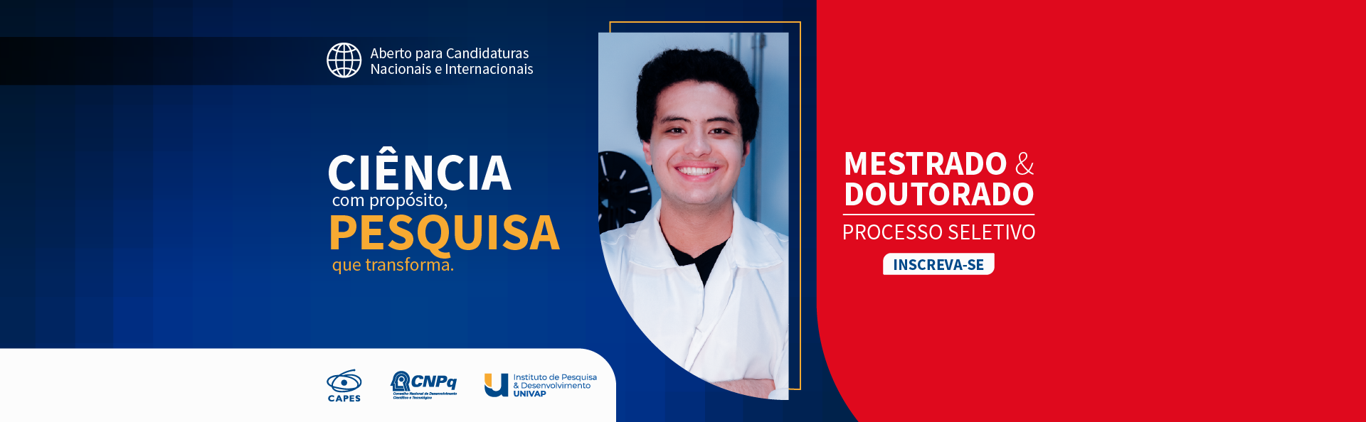Os Programas de Pós-Graduação Stricto Sensu da UNIVAP são referência em ensino e pesquisa, oferecendo uma formação acadêmica de alto nível para aqueles que buscam aprofundamento teórico e desenvolvimento de projetos inovadores. Vinculados à Pró-Reitoria de Pesquisa e Pós-Graduação (PRPPG) e coordenados pelo Instituto de Pesquisa e Desenvolvimento (IP&D), os programas incluem três mestrados acadêmicos, um mestrado profissional e três doutorados, todos acreditados pela CAPES, assegurando credibilidade e valorização no mercado acadêmico e profissional.