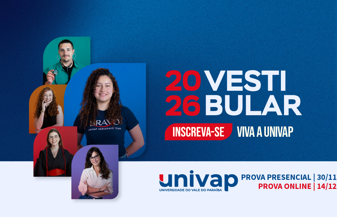 A Univap valoriza o esforço e o desempenho acadêmico de seus candidatos. Por isso, os melhores classificados na prova tradicional presencial do Vestibular, que será realizada no dia 30 de novembro de 2025, poderão conquistar bolsas de estudo exclusivas, garantindo acesso a uma educação de qualidade com descontos que vão de 25% a 100%.