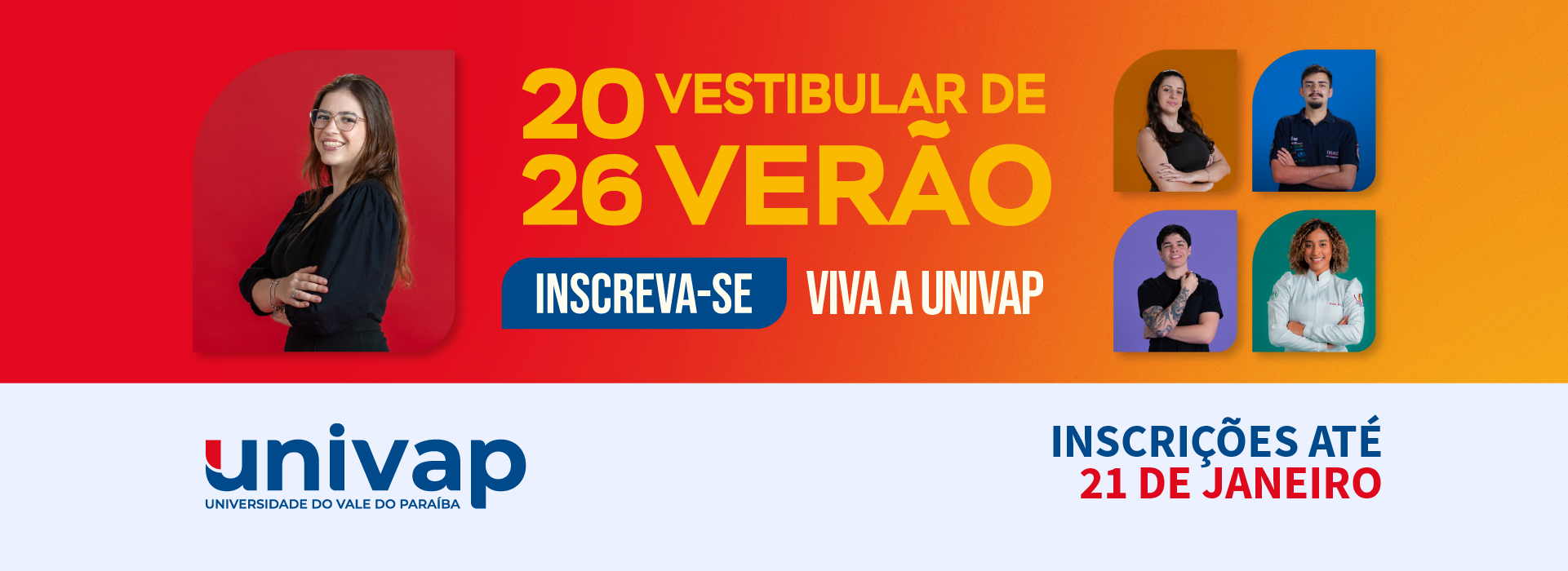 A Univap valoriza o esforço e o desempenho acadêmico de seus candidatos. Por isso, os participantes que alcançarem as melhores classificações gerais na prova online do Vestibular, que será realizada no dia 14 de dezembro de 2025, poderão conquistar bolsas de estudo exclusivas, garantindo acesso a uma educação de qualidade.